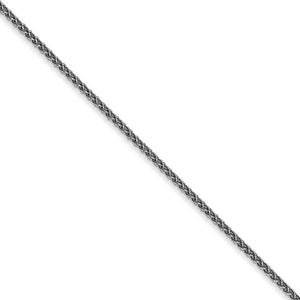 Interwoven figure eight links of polished rhodium-plated 10k white gold form a distinctive, braided design that will add elegance and beauty to your ensemble. This 1.25mm width, 18-inch long, solid link spiga chain necklace closes with a durable lobster clasp.