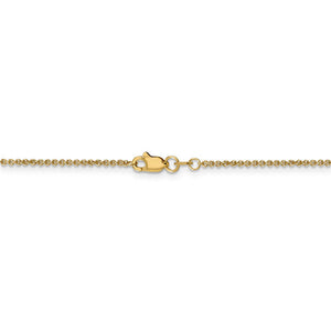 Round links of 14k yellow gold interlock with an alternating pattern to create a simple classic cable design that never goes out of style. This gleaming necklace chain is 1.4mm in width by 18-inches in length and closes with a lobster claw clasp. Made in Italy.