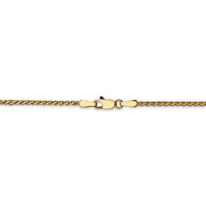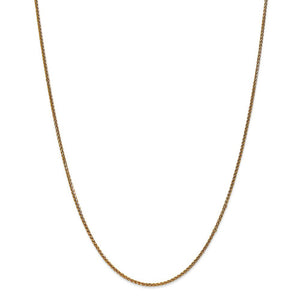 Interwoven solid links of diamond-cut 14k yellow gold form a sparkling braided design that will add elegance and beauty to your favorite charm or pendant. This 1.4mm width, 18-inch long spiga chain necklace closes with a classic lobster-claw clasp.