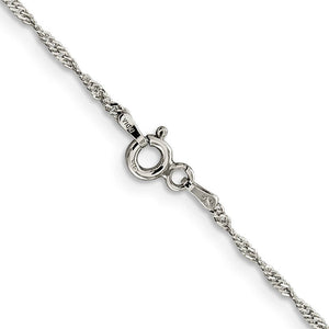 • Known for its unique twisted design this 1.4mm width, 22-inch long Singapore chain features a solid link construction with a high polished finish that catches the light with every movement. It is fashioned from sterling silver and closes with a spring-ring clasp.