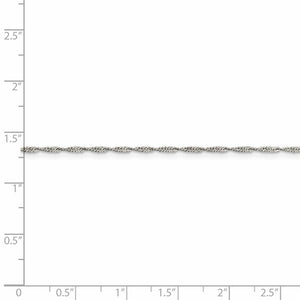 Known for its unique twisted design this 1.4mm width, 16-inch long Singapore chain features a solid link construction with a high polished finish that catches the light with every movement. It is fashioned from sterling silver and closes with a spring-ring clasp.