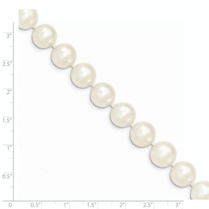 Nothing compares to the beauty and classic sophistication of pearls, the gem of the water and always appropriate. This 20-inch white freshwater cultured pearl necklace features 10 to 11mm near round pearls single knotted by polyester thread and a 14k yellow gold pearl clasp. Due to the natural of pearls, please allow for slight variations in size and color. Gemstone treatment: bleached.