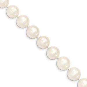 Nothing compares to the beauty and classic sophistication of pearls, the gem of the water and always appropriate. This 18-inch white freshwater cultured pearl necklace features 11 to 12mm near round pearls single knotted by polyester thread and a 14k yellow gold pearl clasp. Due to the natural of pearls, please allow for slight variations in size and color. Gemstone treatment: bleached.