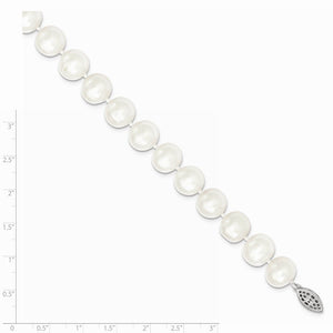 Nothing compares to the beauty and classic sophistication of pearls, the gem of the water and always appropriate. This 18-inch white freshwater cultured pearl necklace features 11 to 12mm near round pearls single knotted by polyester thread and a rhodium-plated sterling silver pearl clasp. Due to the natural of pearls, please allow for slight variations in size and color. Gemstone treatment: bleached.