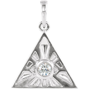 The Eye of Providence, also known as the All Seeing Eye, is a powerful symbol that has been used for hundreds of years around the globe. This small triangle pendant crafted in rhodium-plated 14k white gold features a bezel set, 3mm, 1/10 carat natural diamond that is I1 in clarity and G-H in color. The approximate pendant size is 14mm (9/16 inch) in width by 20mm (3/4 inch) in length with the bail. The chain passage dimensions of the bail is 6 x 1.7mm. This item does not include a chain. This is a made to order item and is estimated to ship 11/24/2025