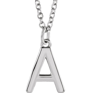 14k White Gold 9.5mm Small Block Initial A-Z Necklace, 18 Inch
