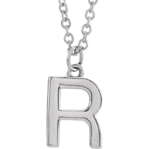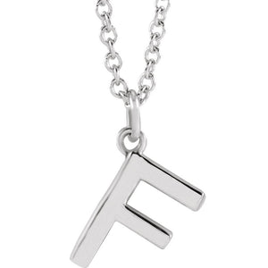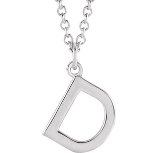 14k White Gold 9.5mm Small Block Initial A-Z Necklace, 18 Inch - Black Bow Jewelry Company