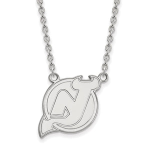 14k White Gold NHL New Jersey Devils Large Necklace, 18 Inch