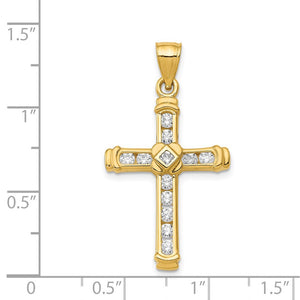 14k Yellow Gold & CZ Cross Pendant, 18 x 35mm - Black Bow Jewelry Company