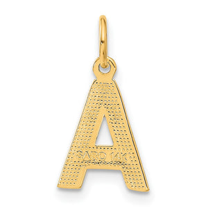 Create a sparkling initial impression with this satin finished 14k yellow gold charm featuring diamond cut accents that twinkle with every movement. Each letter measures approximately 12mm (7/16 Inch) in length and dangles from a classic jump ring that will fit up to a 3mm width chain. Made in the U.S.A. Chain not included.
