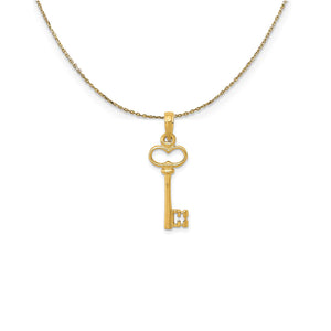 Give a gift they will treasure forever, the key to your heart! This beautiful pendant was crafted in the U.S.A. from polished 14 karat yellow gold and measures 3/4 Inch x 5/8 Inch. Includes a 20 inch long, 0.9mm wide, solid 14k yellow gold cable chain with a spring ring clasp.