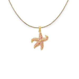 14k Yellow Gold Pink Enameled Starfish Necklace