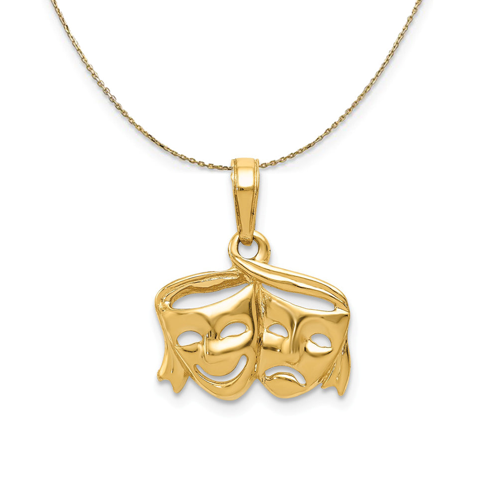14k Yellow Gold polished Female Comedy and Tragedy Necklace - Black Bow Jewelry Company