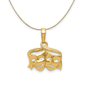 14k Yellow Gold polished Female Comedy and Tragedy Necklace