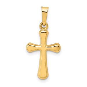 Celebrate and honor all special occasions with jewelry of religious significance! Our collection of spiritually inspired designs that show faith, hope and devotion are perfect for commemorating life's milestones. This polished Latin cross pendant crafted in 14k yellow gold features a hollow, rounded, flat back design. The approximate size is 11mm (7/16 inch) in width by 25mm (1 inch) in length with the bail. This item does not include a chain.