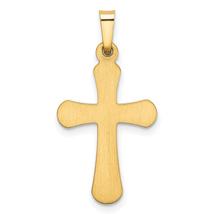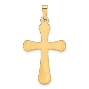 Celebrate and honor all special occasions with jewelry of religious significance! Our collection of spiritually inspired designs that show faith, hope and devotion are perfect for commemorating life's milestones. This polished Latin cross pendant crafted in 14k yellow gold features a hollow, rounded, flat back design. The approximate size is 17mm (5/8 inch) in width by 33mm (1 5/16 inch) in length with the bail. This item does not include a chain.