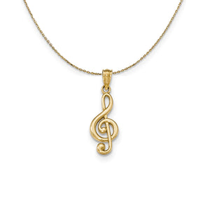 14k Yellow Gold Polished Treble Clef (9 x 25mm) Necklace - Black Bow Jewelry Company