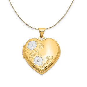 14k Yellow Gold & Rhodium 21mm Floral Heart Locket Necklace - Black Bow Jewelry Company