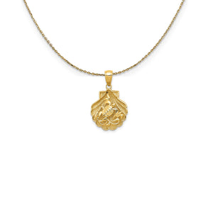 14k Yellow Gold Sea Turtle Kelp in a Scallop Shell Necklace