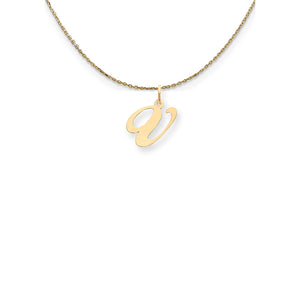 Indulge in a traditional initial charm that subtly enhances and personalizes your jewelry. Each fancy script letter is approximately 13mm (1/2 Inch) in length, fashioned from 14k yellow gold with a high polished finish and includes a standard jump ring. Includes a 20 inch long, 0.9mm wide, solid 14k yellow gold cable chain with a spring ring clasp.