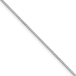 Simple, classic and ready for your favorite pendant, this delicate 14k white gold box chain is 1mm in width by 18 inches in length and closes with a reliable lobster clasp. Made in Italy.