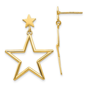 23mm Open Star Dangle Post Earrings in 14k Yellow Gold