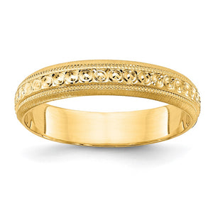Assert your individuality with exquisite style! This standard-fit band created from 14k yellow gold features a detailed sculpted and etched design that is approximately 3mm in width.