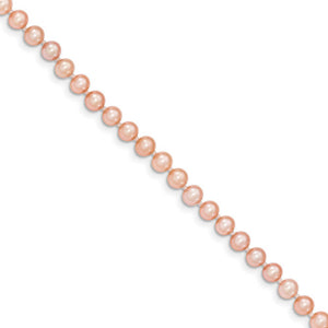 Nothing compares to the beauty and classic sophistication of pearls, the gem of the water and always appropriate. This 16-inch pink freshwater cultured pearl necklace features 4 to 5mm near round pearls single knotted by polyester thread and a 14k yellow gold pearl clasp. Due to the natural of pearls, please allow for slight variations in size and color. Gemstone treatment: dyed.