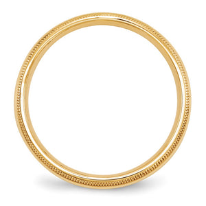A tried and true favorite style featuring a domed center with double milgrain edges created from solid 10k yellow gold. This polished unisex band has a comfort fit shank, is approximately 2mm in thickness (standard weight) and 5mm in width. Suitable for engraving.�