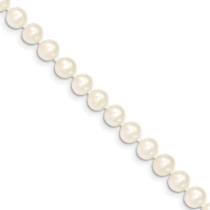 Nothing compares to the beauty and classic sophistication of pearls, the gem of the water and always appropriate. This 18-inch white freshwater cultured pearl necklace features 6 to 7mm near round pearls single knotted by polyester thread and a 14k yellow gold pearl clasp. Due to the natural of pearls, please allow for slight variations in size and color. Gemstone treatment: bleached.