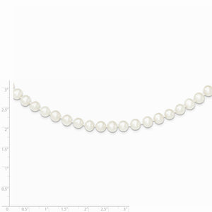Nothing compares to the beauty and classic sophistication of pearls, the gem of the water and always appropriate. This 20-inch white freshwater cultured pearl necklace features 6 to 7mm near round pearls single knotted by polyester thread and a rhodium-plated sterling silver pearl clasp. Due to the natural of pearls, please allow for slight variations in size and color. Gemstone treatment: bleached.