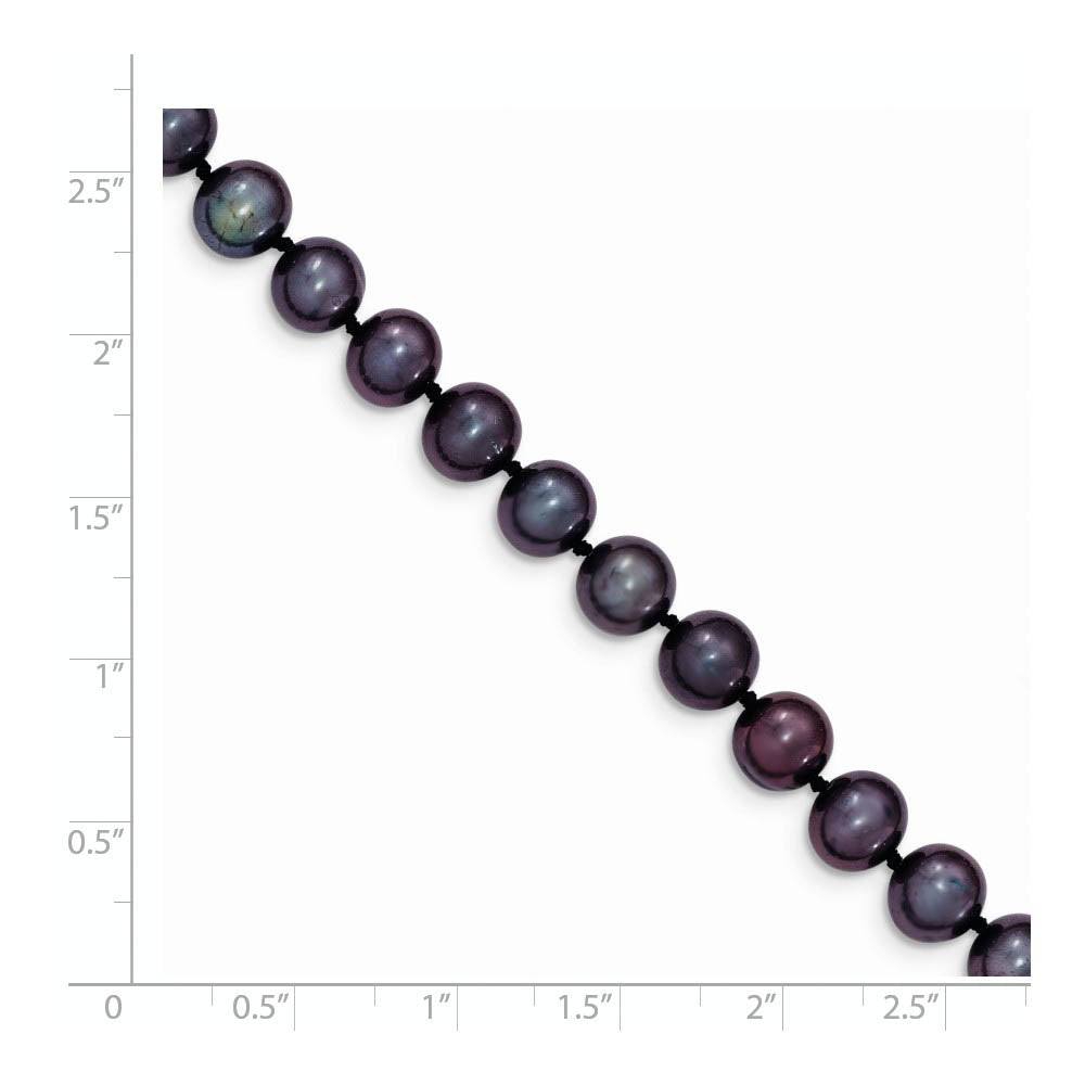 Nothing compares to the beauty and classic sophistication of pearls, the gem of the water and always appropriate. This 24-inch black freshwater cultured pearl necklace features 7 to 8mm near round pearls single knotted by polyester thread and a 14k yellow gold pearl clasp. Due to the natural of pearls, please allow for slight variations in size and color. Gemstone treatment: dyed.