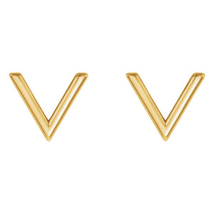 A timeless classic design fashioned from polished 14k yellow gold featuring small 8 x 9mm (5/16 x 3/8 inch) V style studs with friction back posts.