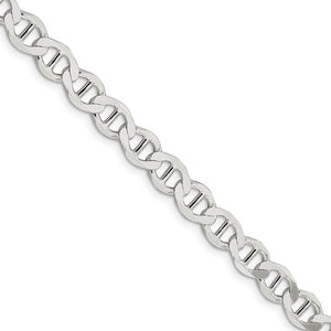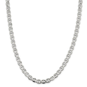 A traditional mariner chain made of sterling silver features hollow flat links that mimics the cable used to anchor boats. Flexible and strong, this 7mm width, 24-inch long chain closes securely with a lobster-claw clasp and makes a beautiful necklace for men.
