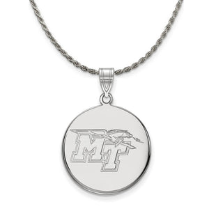 If you are a fan of Middle Tennessee State University and the Blue Raiders then you need to show your school spirit with this Middle Tennessee State University pendant. We are a certified college jewelry retailer and this authentic item is officially licensed. It is crafted from Sterling Silver and crafted by LogoArt in the USA. Includes a flexible and strong diamond cut rope chain. This stunning chain is 2.25mm in width, 24 inches in length and features a sturdy lobster claw clasp. The chain is crafted in Italy.