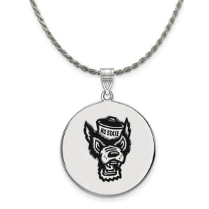 • If you are a fan of North Carolina State University and the Wolfpack then you need to show your school spirit with this North Carolina State University pendant. We are a certified college jewelry retailer and this authentic item is officially licensed. It is crafted from Sterling Silver and crafted by LogoArt in the USA. Includes a flexible and strong diamond cut rope chain. This stunning chain is 2.25mm in width, 20 inches in length and features a sturdy lobster claw clasp. The chain is crafted in Italy.