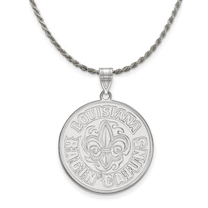 If you are a fan of The University of Louisiana Lafayette and the Ragin' Cajuns then you need to show your school spirit with this University of Louisiana Lafayette pendant. We are a certified college jewelry retailer and this authentic item is officially licensed. It is crafted from Sterling Silver and crafted by LogoArt in the USA. Includes a flexible and strong diamond cut rope chain. This stunning chain is 2.25mm in width, 20 inches in length and features a sturdy lobster claw clasp. The chain is crafted in Italy.