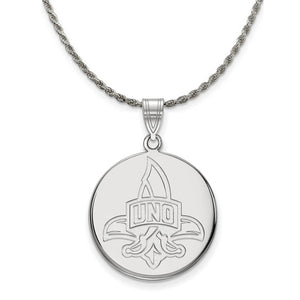 • If you are a fan of The University of New Orleans and the Privateers then you need to show your school spirit with this University of New Orleans pendant. We are a certified college jewelry retailer and this authentic item is officially licensed. It is crafted from Sterling Silver and crafted by LogoArt in the USA. Includes a flexible and strong diamond cut rope chain. This stunning chain is 2.25mm in width, 20 inches in length and features a sturdy lobster claw clasp. The chain is crafted in Italy.