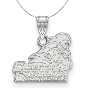 • If you are a fan of Coastal Carolina University and the Chanticleers then you need to show your school spirit with this Coastal Carolina University necklace. We are a certified college jewelry retailer and this authentic item is officially licensed. It is crafted from Sterling Silver and crafted by LogoArt in the USA. Includes an 18 Inch, 1.25mm sterling silver franco chain.