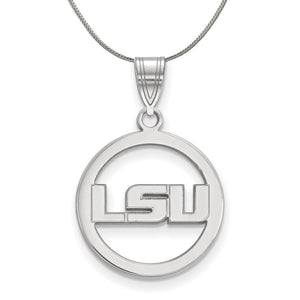 • If you are a fan of Louisiana State University and the Fightin Tigers then you need to show your school spirit with this Louisiana State University necklace. We are a certified college jewelry retailer and this authentic item is officially licensed. It is crafted from Sterling Silver and crafted by LogoArt in the USA. Includes an 18 Inch, 1.25mm sterling silver franco chain.