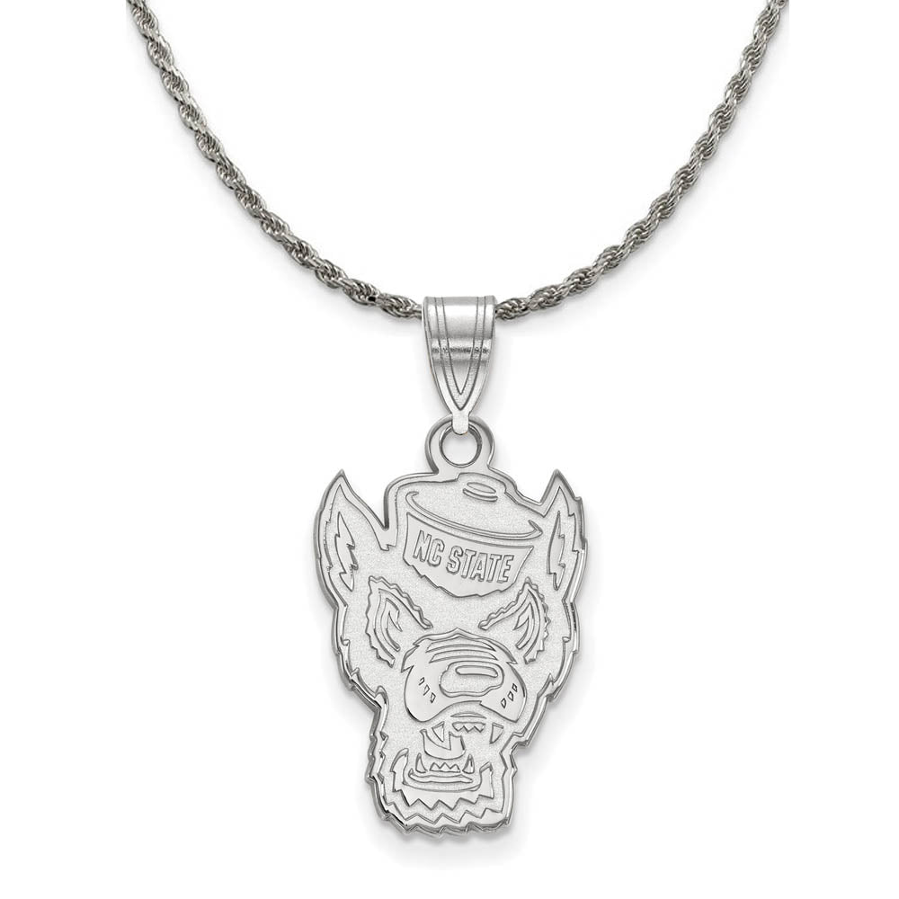 • If you are a fan of North Carolina State University and the Wolfpack then you need to show your school spirit with this North Carolina State University pendant. We are a certified college jewelry retailer and this authentic item is officially licensed. It is crafted from Sterling Silver and crafted by LogoArt in the USA. Includes a flexible and strong diamond cut rope chain. This stunning chain is 2.25mm in width, 24 inches in length and features a sturdy lobster claw clasp. The chain is crafted in Italy.