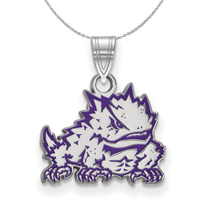 If you are a fan of Texas Christian University and the Horned Frogs then you need to show your school spirit with this Texas Christian University necklace. We are a certified college jewelry retailer and this authentic item is officially licensed. It is crafted from Sterling Silver and crafted by LogoArt in the USA. Includes a 16 Inch, 1.25mm cable chain.