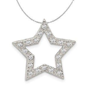 Light up your day with a brilliant Star studded pendant fashioned from sterling silver and prong set with 20 round cubic zirconia gemstones. It features a hidden chain slide and is approximately 22mm (7/8 Inch) in width by 22mm (7/8 Inch) in length. Includes a 1.25mm, 20 inch sterling silver cable chain.