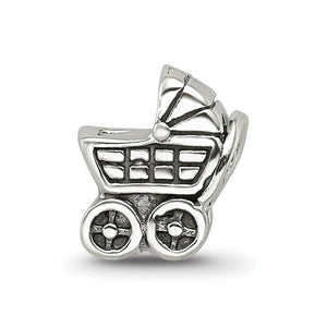 What better way to celebrate the miracle of a new baby than with this adorable baby carriage? This beautiful charm created from sterling silver features a popular, antique finish and measures approximately 10 x 10mm with a 4mm core. All of our charms are interchangeable as well as compatible with Reflections and other popular 3mm width bead style bracelets and necklaces.