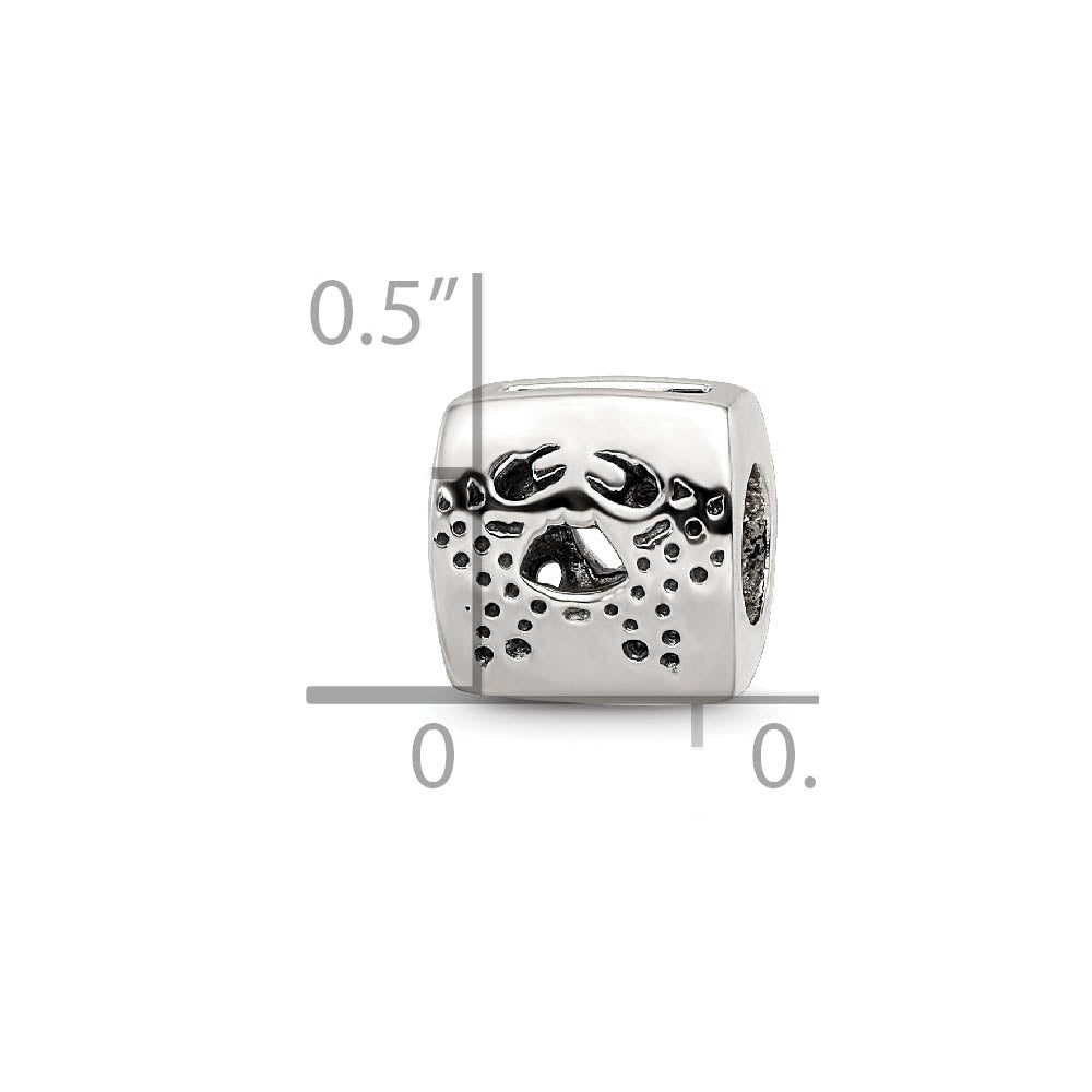 Zodiac sign of Cancer, the crab is for individuals with birthdays from June 22nd to July 22nd. This double sided; sterling silver charm measures approximately 12 x 13mm and has a 4mm core that is interchangeable as well as compatible with Reflections and other popular 3mm width bead style bracelets and necklaces.