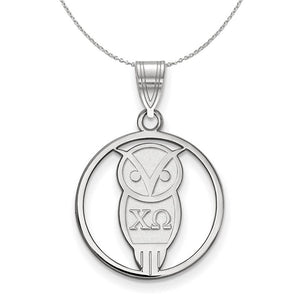 Sterling Silver Chi Omega Medium Circle Pendant Necklace