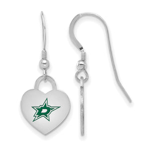 Sterling Silver NHL Dallas Stars Enamel Heart Dangle Earrings