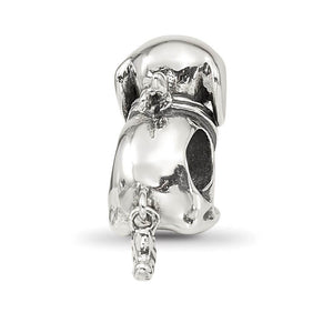Convey your love for dogs with this irresistible, dangling tail canine charm crafted from sterling silver and red crystals. It measures approximately 7mm in width by 13mm in length and has a 4mm core that is interchangeable as well as compatible with Reflections and other popular 3mm width bead style bracelets and necklaces.