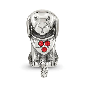Sterling Silver & Red Crystals Bandana Dog w/ Dangling Tail Bead Charm - Black Bow Jewelry Company