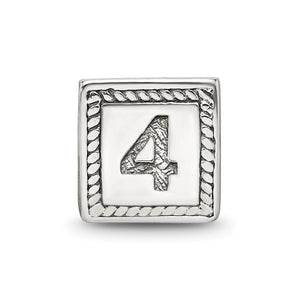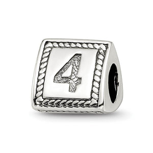 Triangle Block, Number 4 Sterling Silver Bead Charm